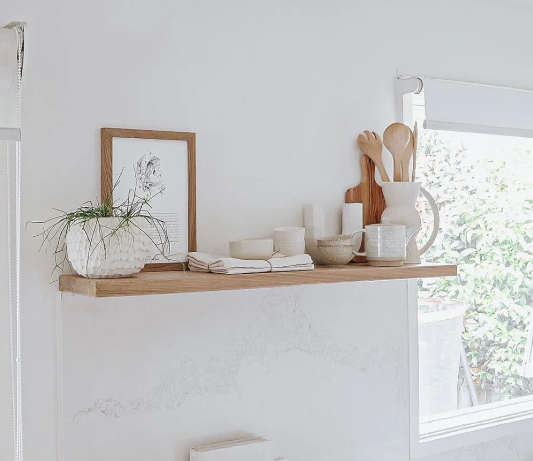At The Timber Line, our floating shelves are handmade locally in Newcastle; available in different sizes, with custom dimensions upon request. We create bespoke shelving pieces customised to your unique needs, ensuring a perfect fit for your space. A variety of wooden finishes make our floating shelves naturally integrate into any decor style.Ā
