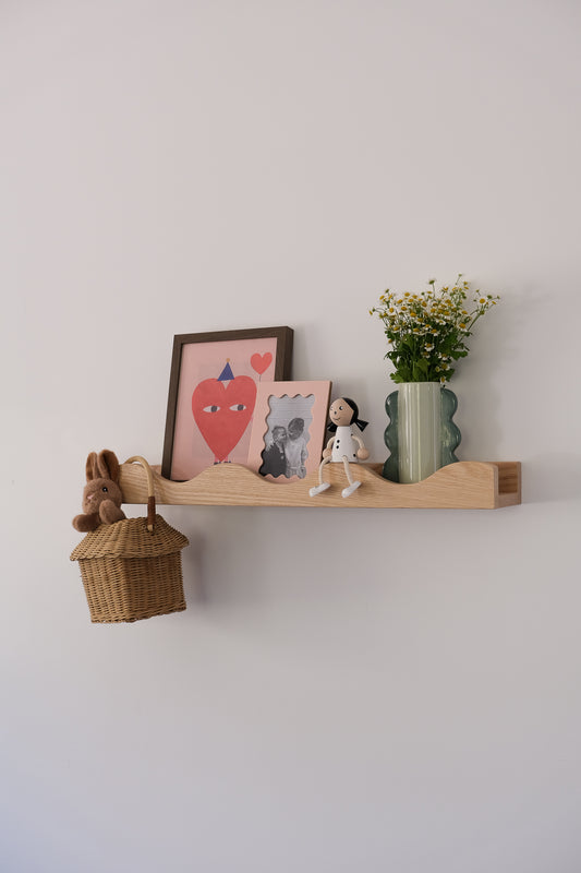 Maintaining your wall shelf is simple, three steps - dust it with a soft cloth, use appropriate cleaning products and occasionally polish to preserve the wood's finish.